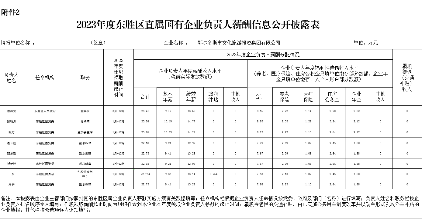 2023年度东胜区直属国有企业负责人薪酬信息公开披露表