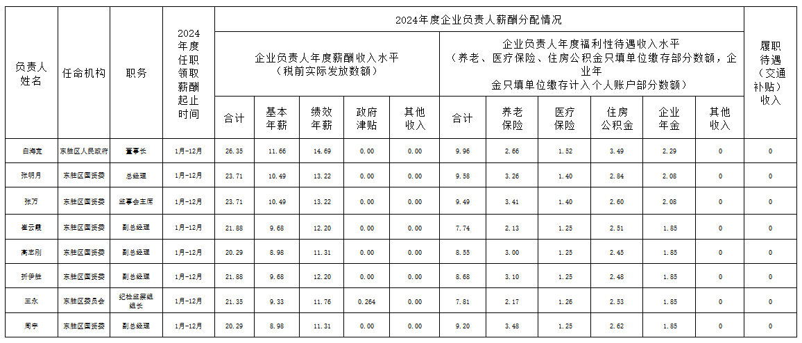 2024年度东胜区直属国有企业负责人薪酬信息公开披露表